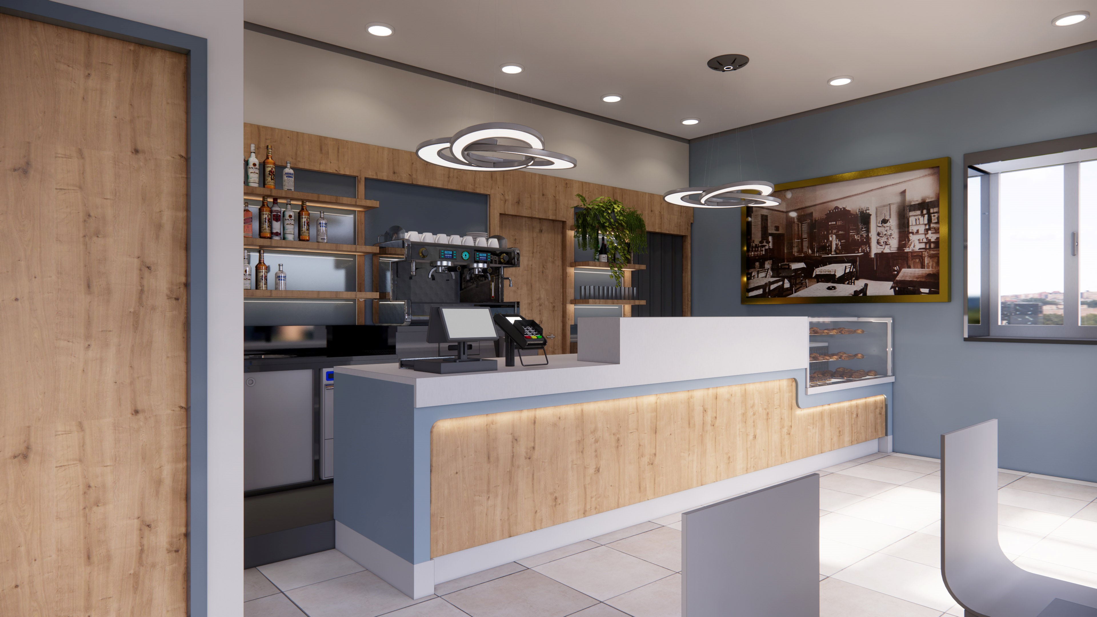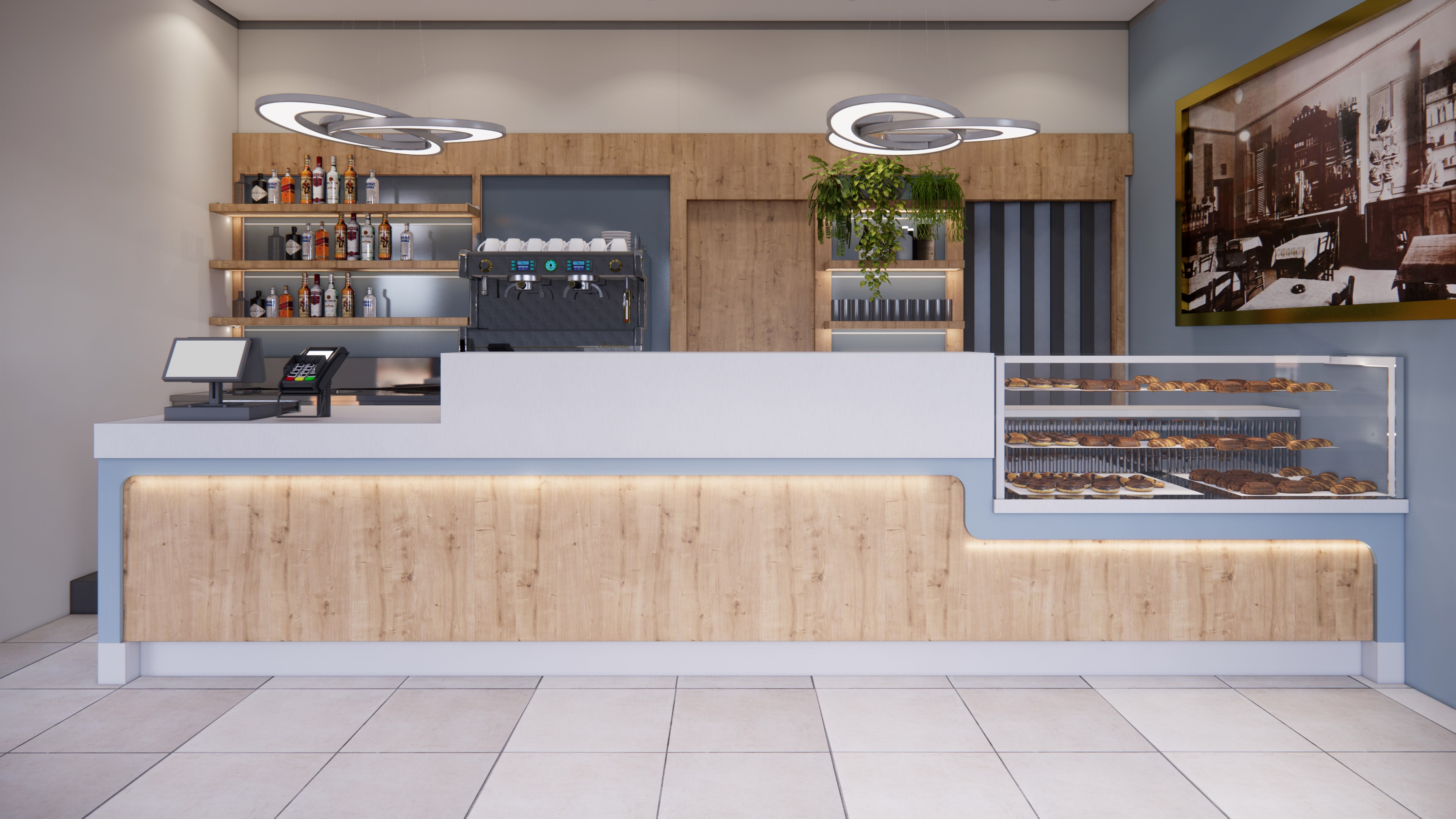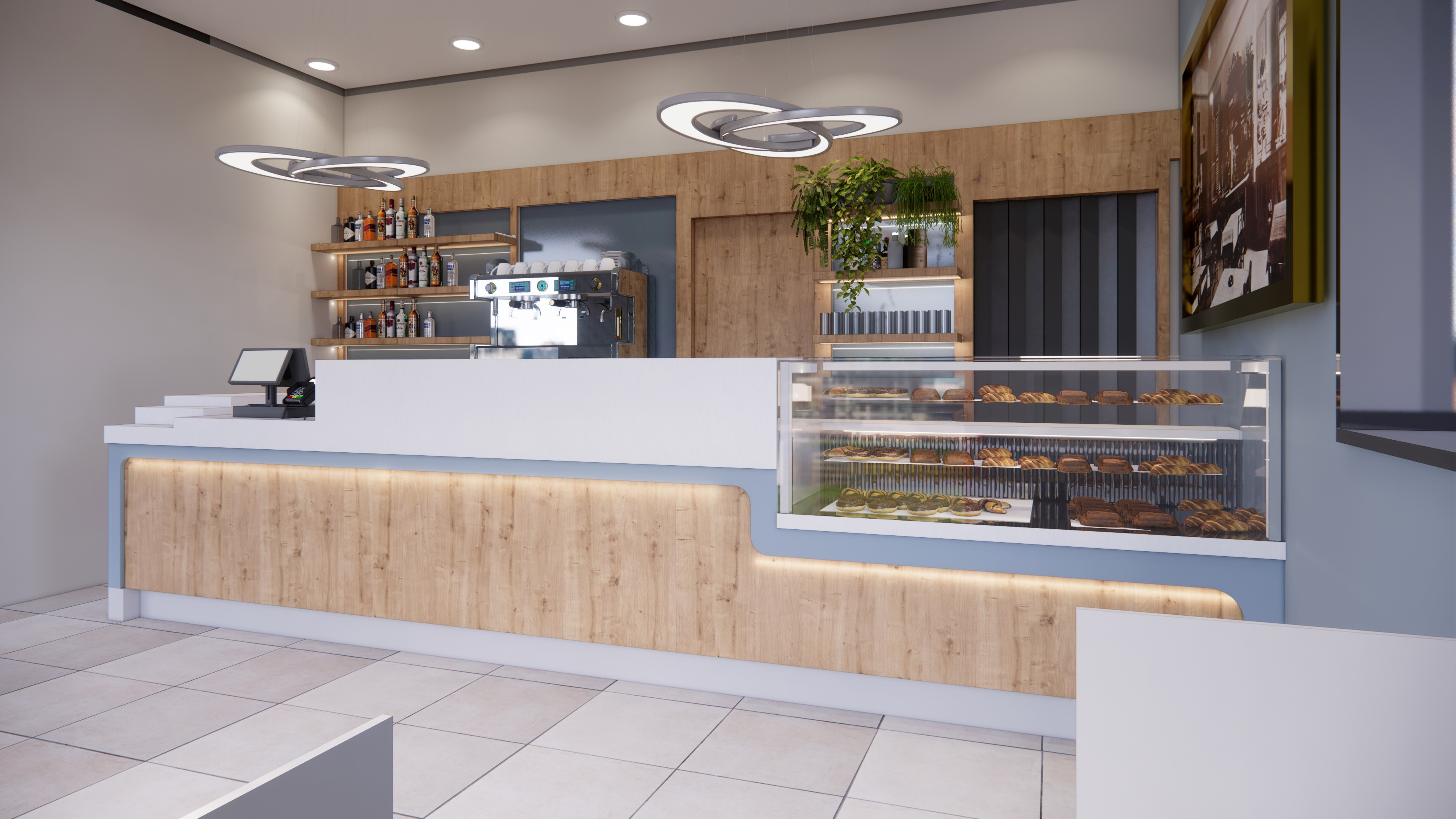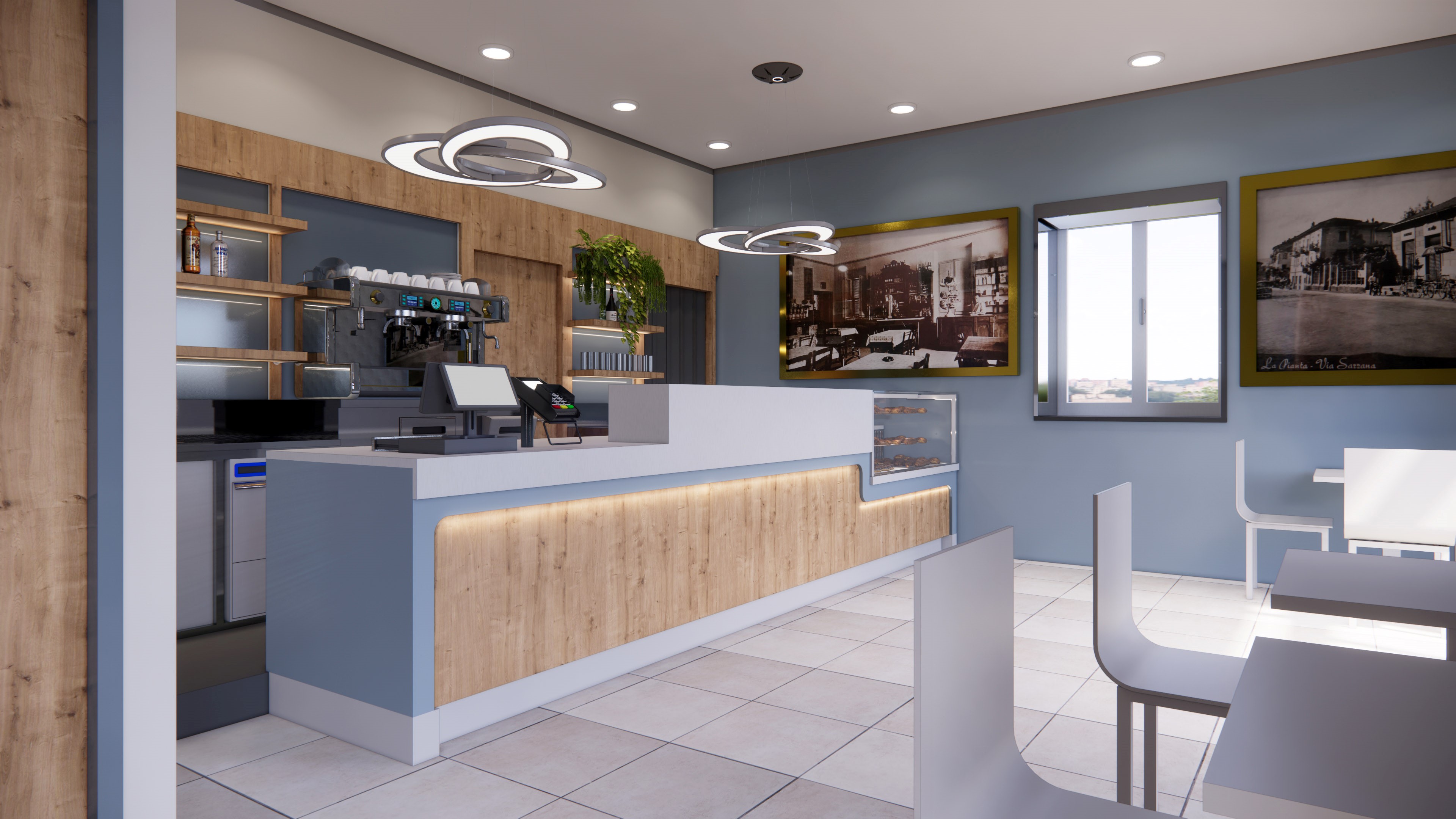 The visual essentiality of this environment is built through a harmonious dialogue between clean shapes and warm materials. The counter, covered in light wood and framed by smooth white surfaces, becomes the central element of the space, conveying a feeling of order and transparency. The integrated showcase on the right, linear and bright, carefully displays the confectionery proposals, inviting the gaze to focus on the quality of the products.